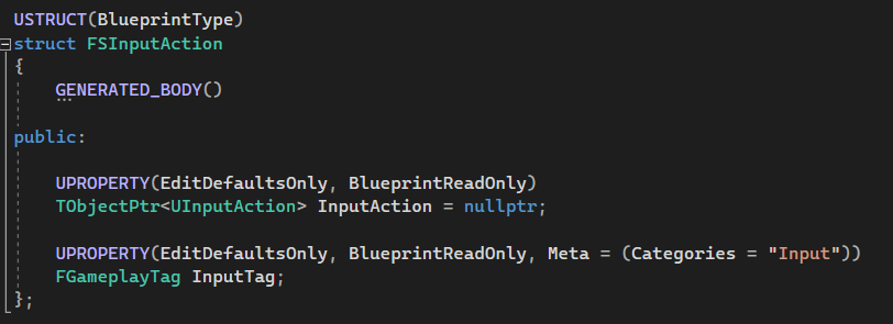 The second struct will be used to bind Gameplay Tag into input action.
