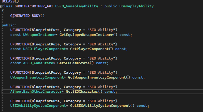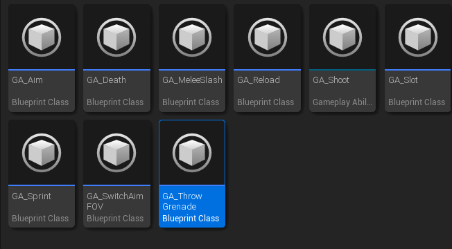 Here is a list of Gameplay Ability that I created and applied in this project. Critical gameplay functionality was done and replicated inside these Gameplay Ability as well. For more detail functionality, feel free to check the Github link.