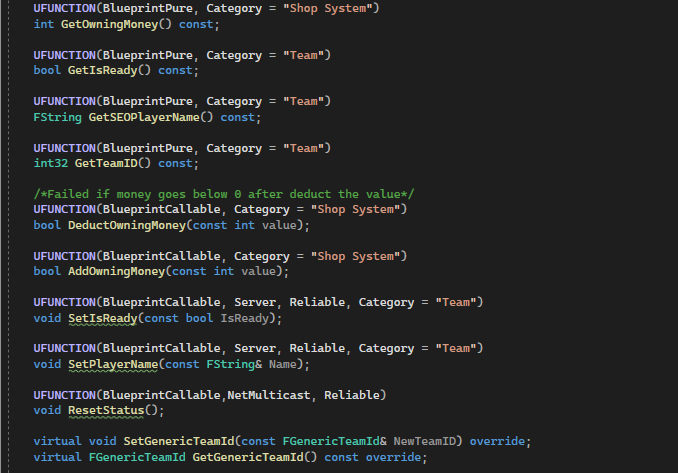 It is worth to mention the Player State as well since it also storing important data of the player such as player name, their current money and player ID.